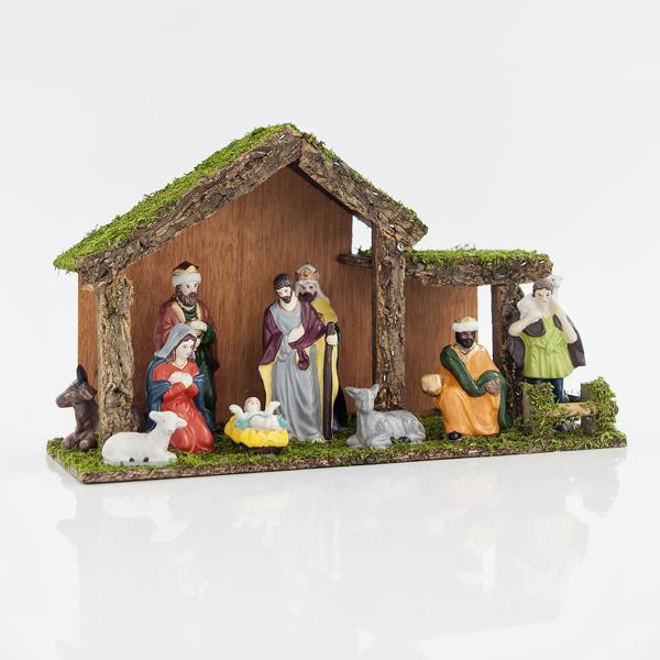 ΦΑΤΝΗ ΞΥΛΙΝΗ ΜΕ 10 ΠΟΡΣΕΛΑΝΙΝΕΣ ΦΙΓΟΥΡΕΣ, 40x15x24cm