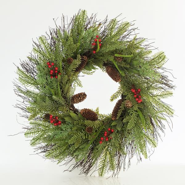 ΣΤΕΦΑΝΙ ΜΕ ΠΕΥΚΟΒΕΛΟΝΑ ΚΑΙ BERRY, 66cm