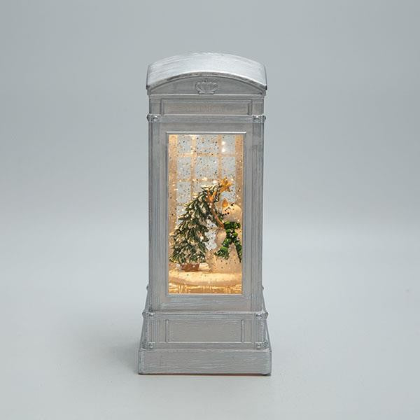ΤΗΛΕΦΩΝΙΚΟΣ ΘΑΛΑΜΟΣ ΜΕ ΧΙΟΝΑΝΘΡΩΠΟ, ΛΕΥΚΟΣ, ΜΕ ΝΕΡΟ ΣΤΟ ΕΣΩΤΕΡΙΚΟ, ΦΩΤΙΖΟΜΕΝΟΣ, ΜΠΑΤΑΡΙΑΣ, TIMER, 8.8x8.8x21cm