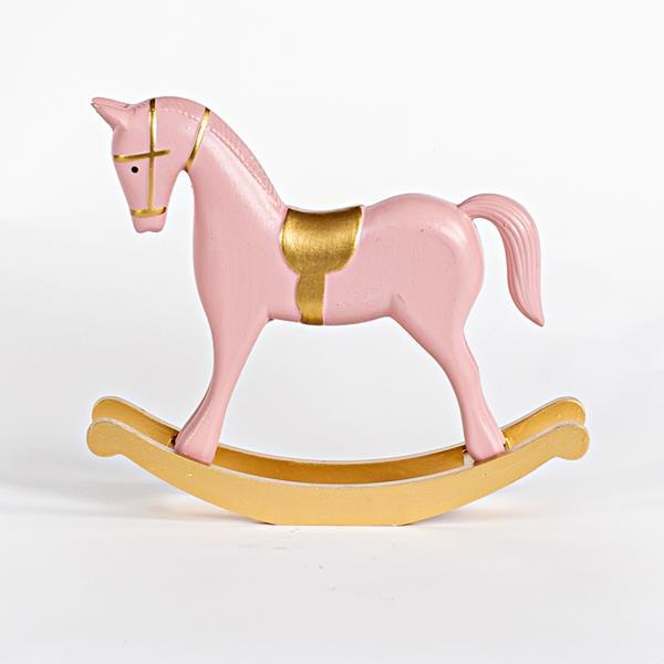 ΞΥΛΙΝΟ ΑΛΟΓΑΚΙ, ΡΟΖ, ΜΕ ΧΡΥΣΕΣ ΛΕΠΤΟΜΕΡΕΙΕΣ, 26,5x6,5x23cm