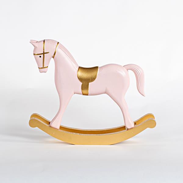 ΞΥΛΙΝΟ ΑΛΟΓΑΚΙ, ΡΟΖ, ΜΕ ΧΡΥΣΕΣ ΛΕΠΤΟΜΕΡΕΙΕΣ, 37x8x32cm
